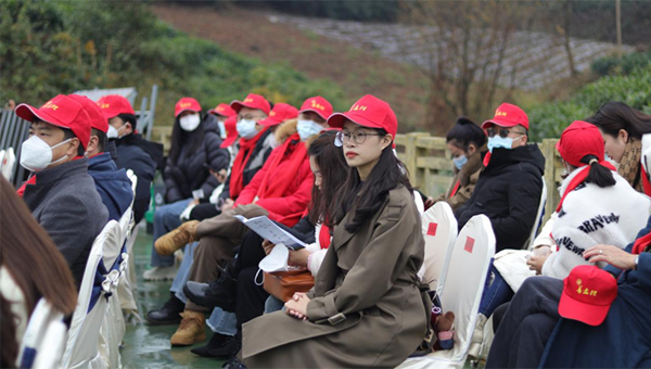 元月1日,莅临此次大会的正山堂普安红经销商家人们乘车前往茶源街道大洼茶神谷参加“贵州绿茶”第一采活动。