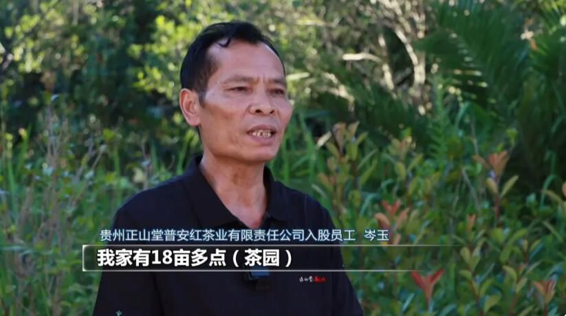 贵州正山堂普安红茶业有限责任公司入股员工 岑玉:我家有18亩多点(茶园),如果按平常在市场上的价格卖,要低于公司。但是我入在公司里面,平均一年都要有个6万多块钱的收入,我也在里面打工,做茶,公司帮我交了五险一金,我每年的收入得了三、四万元钱。