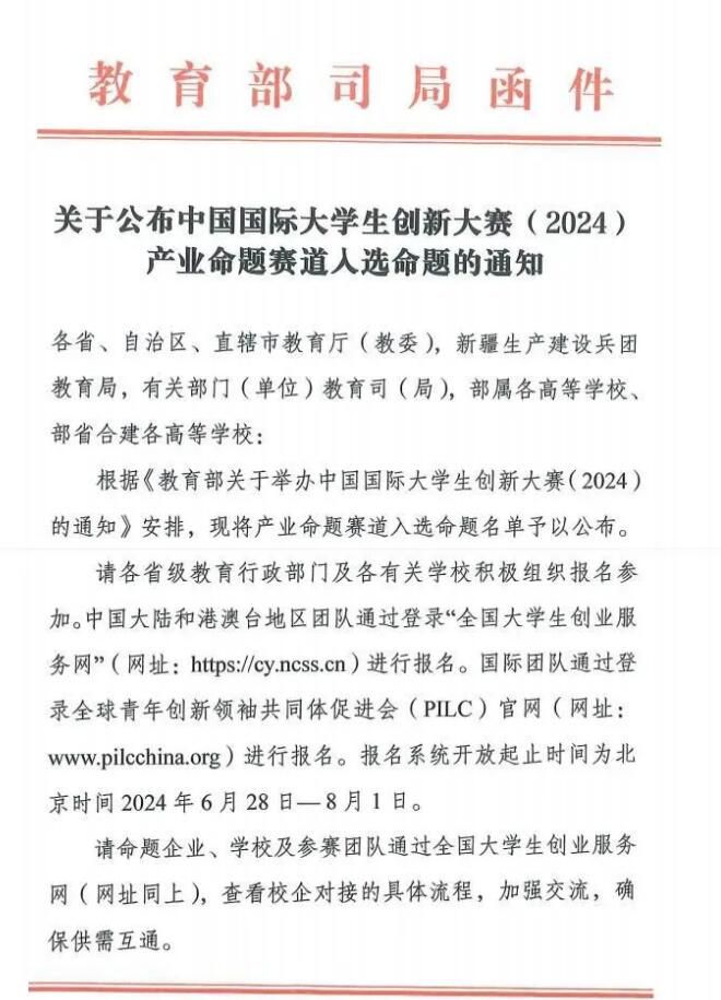 2024年6月27日,中国国际大学生创新大赛产业命题赛道入选名单公布,贵州正山堂普安红茶业有限责任公司提出的命题“基于快节奏工作生活节奏下传统茶饮快速直饮解决方案”入选其中,供参赛大学生团队进行应答和解决方案的设计。