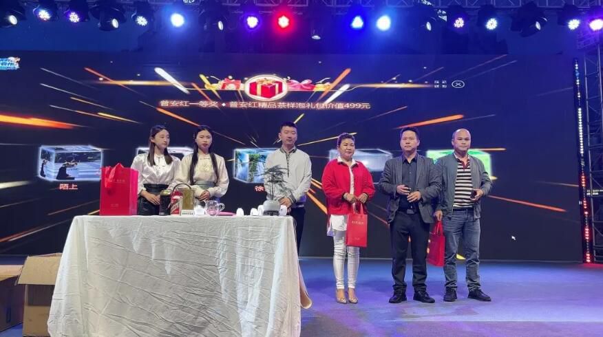 茶艺表演结束后,正山堂普安红还特别设置了与观众互动抽奖环节,一等奖5名、二等奖10名、三等奖15名,奖品分别价值499元、399元、299元。